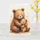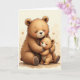 This card shows two cuddly bear-like characters in a close embrace, with the larger one seated calmly and wrapping both arms around the smaller companion. Their eyes are closed and their cheeks are softly pink, giving the scene a tender, affectionate feel ❤️. The colors stay in gentle creams, beiges, and warm cocoa browns, creating a quiet, cozy setting that keeps the focus on their closeness. The fur is drawn with soft, feathery strokes that make the hug look plush and comforting, like they’re sharing a long, unhurried moment together. Near the top, a short greeting appears in light brown text, centered above the characters so it reads first without overpowering the art. The background remains minimal, with a few faded circular shapes that look like soft light spots, adding depth while staying subtle. Behind the pair, a faint heart shape blends into the background, hovering lightly above their heads 🌼.