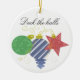 A pretty design featuring sof tcolorful Christmas ornaments in green,blue and rose. Says deck the halls, customize as desired.