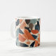 An elegant cup of ceramic coffee with a leaf design in soft tones such as mint green, beige, pale pink and celestial. The shape is classic, with rounded edges and a comfortable curved handle. The leaf pattern, delicately distributed around the surface, conveys a feeling of calm and nature.