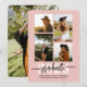 Announce your graduate’s achievement in style with this modern soft coral photo collage graduation announcement. Featuring four customizable photo slots, elegant script typography, and soft sage tones, this design perfectly blends sophistication and personalization. Ideal for sharing memories and celebrating this milestone with friends and family.