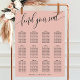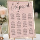 Welcome your guests with this elegant soft coral pink wedding seating chart. Featuring a minimalist design with modern script that says find your seat, this seating chart is perfect for a sophisticated and stylish wedding. The soft color and clean layout provide a refined and organized look, ensuring your guests can easily find their seats. Customize with your names and table arrangements to create a unique and cohesive addition to your wedding decor. This seating chart accommodates up to 12 tables, making it ideal for a well-planned and elegant celebration.