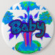 Soft Cyan Blue Flower Art: A Baby's Touch. Button