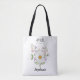 Carry your essentials in charming style with this tote bag, adorned with April's birth flowers: a delightful bouquet of daisies and sweet peas in soft pastel shades. This whimsical design evokes a peaceful garden mood, perfect for nature lovers and those who adore cottagecore aesthetics. It makes a thoughtful and personalized gift for anyone celebrating an April birthday, Mother's Day, or simply for adding a unique touch to their everyday errands. Customize it with a name to create a truly special and practical accessory.