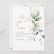 Design features the beautiful, soft eucalyptus leaf with a touch of gold here and there. Easily add your best photo and your important information of choice. Ideal botanical floral design for any modern save-the-date announcement greenery theme.