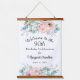 A beautifully feminine welcome tapestry sign to celebrate a 90th birthday, this design features bouquet borders of watercolor poppies, roses, eucalyptus and trailing greenery in pastel beige, pink, green and blue-green. Personalize the text template with your desired info.