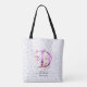 Elegant tote bag featuring a soft floral initial D design combined with delicate pastel abstract patterns. This refined and feminine artwork brings a calm, modern aesthetic perfect for everyday use, shopping, work, or casual outings. Ideal for lovers of minimalist florals, gentle color palettes, and sophisticated personalized-style designs.