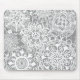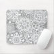 A nice mousepad featuring an elegant floral mandala pattern in soft gray and white.