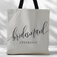 Soft Gray Bridesmaid Modern Script Tote Bag