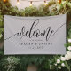Create a sophisticated entryway for your ceremony or reception with this elegant soft gray wedding welcome banner. The design features a modern, hand-lettered "Welcome" script in black, paired with a clean serif font for the couple's names and wedding date. Its minimalist aesthetic and neutral gray tone make it a versatile choice that beautifully complements any wedding theme, from modern industrial to romantic garden settings. This banner offers a high-impact way to greet your guests while maintaining a polished and timeless look for your special day. The spacious layout ensures that your personalized details are the central focus of your event decor.