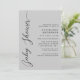 Having your Soft Gray Modern Script Baby Shower Invitation match the theme of your party is a great detail that your guests will appreciate. The thoughtfulness of a consistent party theme is often appreciated and can show your guests that you can host a cohesive event.