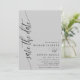 This soft gray save the date card features a modern script font that adds a touch of timeless elegance. The minimalist design keeps the focus on your names and wedding date, making a clear and stylish statement.