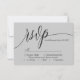 This soft gray RSVP card features a modern calligraphy script font, adding a touch of timeless grace to your wedding stationery. The minimalist design keeps the focus on the RSVP details, ensuring a clear and stylish response from your guests.