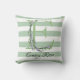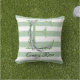 Soft green strips monogram lavender greenery outdoor pillow