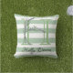 Soft green strips monogram lavender greenery outdoor pillow