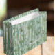 This product features a soft green, striped design with a watercolor effect. The stripes, in varying shades of green, overlay a delicate floral pattern consisting of light white and pale pink roses, surrounded by green leaves and subtle greenery. The stripes create a modern and abstract feel while the floral elements lend a soft, natural touch. The combination of the muted green tones and gentle florals creates a calm, fresh aesthetic.