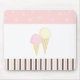 Soft smooth colors on this strawberry pink and vanilla ice cream cone design. The top of the mousepad has a border of soft pink and white polka dots and the bottom has a border of chocolate and strawberry stripes. A real treat!