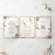 Soft Ivory Beige Floral Gold All in One Wedding Tri-Fold Invitation