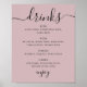 Soft Mauve Pink Wedding Drinks Menu | Elegant Poster