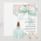 Soft mint green bow pink florals dress Quinceanera Invitation