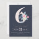 SOFT NAVY BLUSH BLUE FLORAL 6TH ANY AGE BIRTHDAY INVITATION