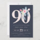 SOFT NAVY BLUSH BLUE FLORAL 90TH ANY AGE BIRTHDAY INVITATION