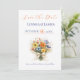 Elegant save the date card featuring a soft wildflower bouquet with dusty blue accents and warm neutral tones. The clean, minimal layout highlights your names and date beautifully, perfect for garden, outdoor, or modern romantic weddings.