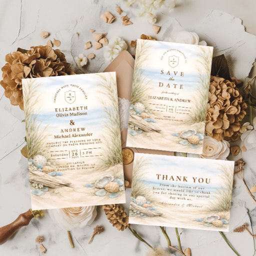 Soft Ocean Breeze Wedding Invitation