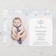 Soft Pastel Blue Peonies Cross Boy Baptism Invitation