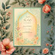 This elegant pastel wedding design features a delicate watercolor arch surrounded by soft floral details in shades of blush, mint, and warm gold. The subtle golden frame adds timeless sophistication, while the gentle color gradients evoke serenity, love, and joyful celebration. Ideal for modern Arab weddings, Nikah events, and multicultural ceremonies, it brings together beauty, calm, and refinement.