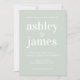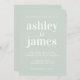 Plain white envelopes are included with paper invitations and will come to fit the invitation size you select. If you don’t need the envelopes, you may choose to not receive them by selecting the dropdown below "Envelopes" and choosing "None." If you’d like to have a design on your envelopes, you can browse all of these available envelopes to find the design that complements your Modern Minimal Typography Pastel Green Wedding Invitation.
