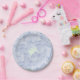 Pastel hydrangeas in beautiful light color of mauvy blue accent this paper plate. Lovely garden flowers. Add a name or words, great for a bridal shower or wedding.