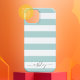 Soft Pastel Teal White Striped Pattern Grey Script Case-Mate iPhone Case