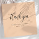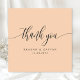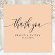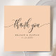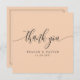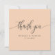 Express your sincere gratitude with this elegant wedding thank you card, featuring a minimalist design in a warm and inviting soft peach hue. The modern, hand-lettered "thank you" script flows gracefully across the card, paired with a clean serif font for the couple's names and wedding date. Its sophisticated and timeless aesthetic makes it a perfect choice for any wedding style, from romantic garden ceremonies to modern indoor receptions. This high-quality card provides a polished and professional way to share your appreciation with guests after your special day. The minimalist layout ensures your personalized message remains the central focus.