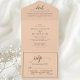 This all-in-one invitation features a soft peach backdrop paired with a modern script font, exuding minimalist elegance. The clear and easy-to-read design ensures your guests receive all the essential information for your wedding celebration.