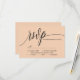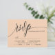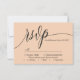 This soft peach RSVP card features a modern calligraphy script font, adding a touch of timeless grace to your wedding stationery. The minimalist design keeps the focus on the RSVP details, ensuring a clear and stylish response from your guests.