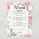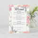 Guide your guests through your wedding feast with this elegant soft peach and pink watercolor floral menu card. Perfectly curated for spring and summer garden weddings, it features romantic delicate roses and sophisticated black line art accents. This customizable menu adds a timeless, botanical touch to your reception table setting and matches your floral wedding suite.