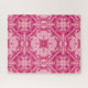 Puzzle in an abstract, geometric 4-way mandala pattern in soft shades of fuchsia and pastel pink