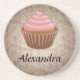 Soft Pink and Brown Cupcake, Personalized Keepsake Drink Coaster
