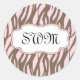 Soft Pink and Brown Monogram Frame Classic Round Sticker