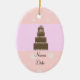 Soft Pink and Chocolate Wedding Cake Ceramic Ornament