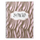 Add your custom name, monogram initials or other text to this pretty and elegant light pink and smooth brown zebra print journal, diary or notebook. Lined paper inside. A sweet gift for the feminine lady with class and grace. Pretty, Posh, Pink design makes a great accessory for any woman. Features a contemporary ladylike pattern, with a cute shape-frame border, and feminine script writing.