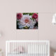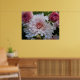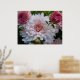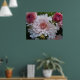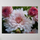 Beautiful soft pink and dark pink Chrysanthemum photograph, featuring a large soft pink flower in the middle with darker pink buds and flowers to the sides.