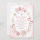 Soft Pink Dusty Rose Floral Cross Girl Baptism Invitation