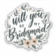 Discover a unique way to pop the question to your bridal squad with our "Will You Be My Bridesmaid?" sticker decal, rendered in an elegant script. This chic proposal accessory is adorned with a tender floral arrangement, featuring soft pink flowers and lush green leaves, encapsulating the sweet essence of your big day. It's the perfect little keepsake to make your bridesmaid proposal memorable. Whether it's for your best friend, sister or cousin, this sticker adds a personal and elegant touch to your bridesmaid invite, making it a cherished token of your special moment together.