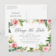Need to change your wedding date? Our elegant floral change the date wedding postponement postcards are perfect to help you notify guests of your new wedding date. The stylish change the date postcard features "Change the Date" in a modern calligraphy script with a border of pink, blush, white, and peach watercolor flowers with vibrant green leaves. Personalize the postcard by adding your names, return address, wedding details, wedding website, etc.