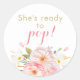 Baby Shower "she's ready to pop!" stickers featuring soft pink floral.