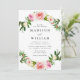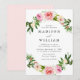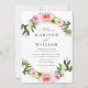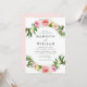 Elegant, floral wedding invitations featuring a spray of watercolor pink and blush flowers with vivid green leaves at the top and bottom of the invite. Personalize the wedding invites by adding your names, the date & time, venue name, etc. The invite reverses to a blush pink background.