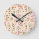 Soft Pink Floral Stripe Pattern Round Clock
