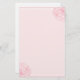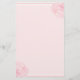 Soft pink colored stationary paper accompanied by two lovely blooming etched pink roses blossoming in the top and bottom corners.