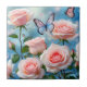 Soft Pink Rose Flower Blue Butterfly Ceramic Tile
